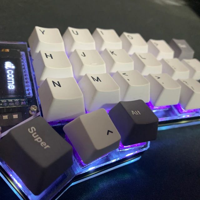A wireless keyboard with power saving display finishing with MBK Legend ‡ 40s keycaps